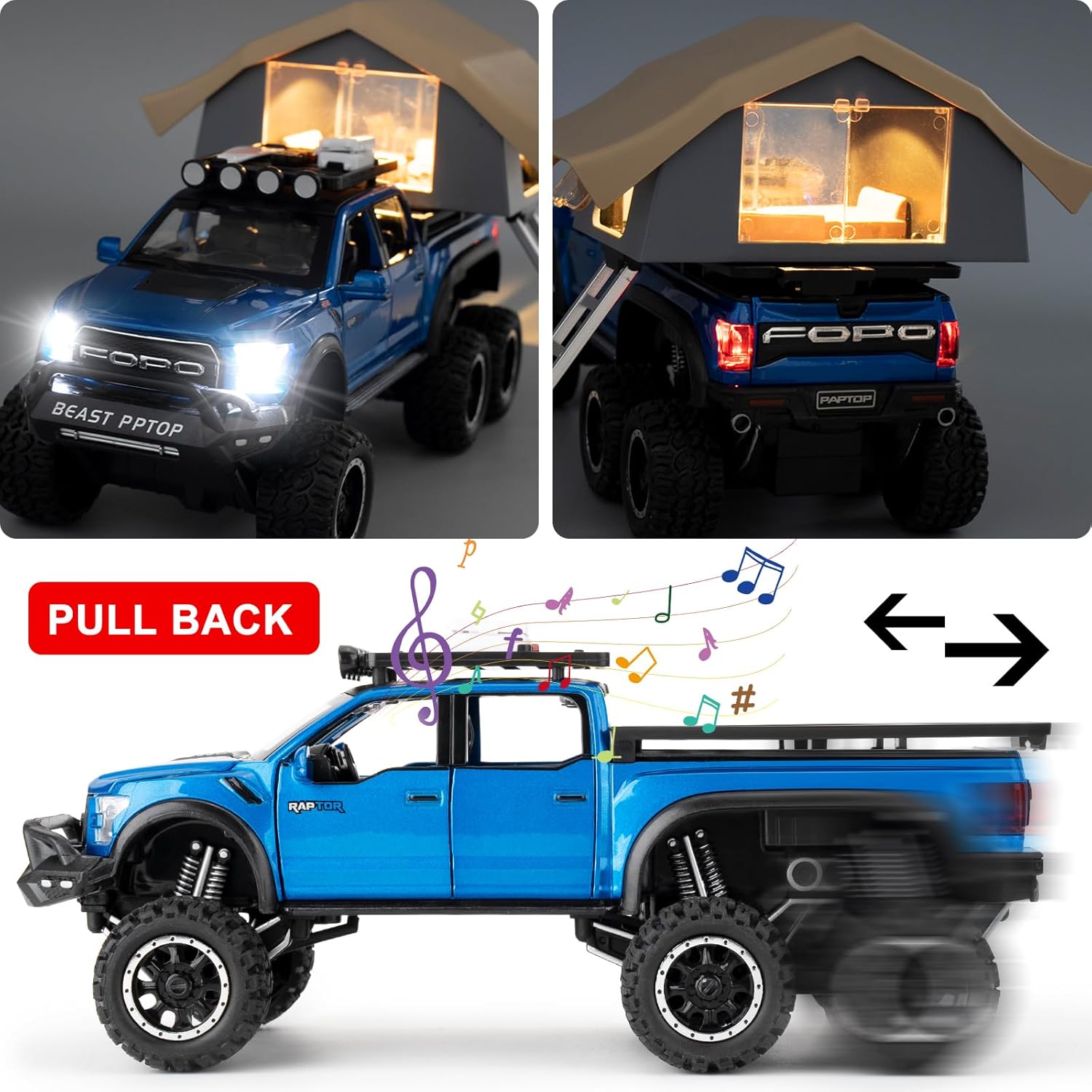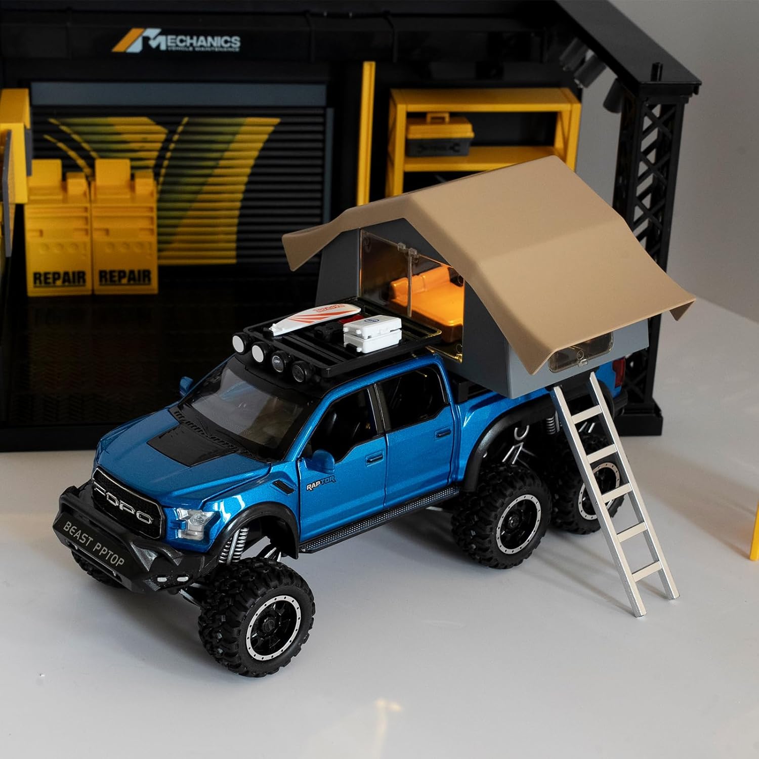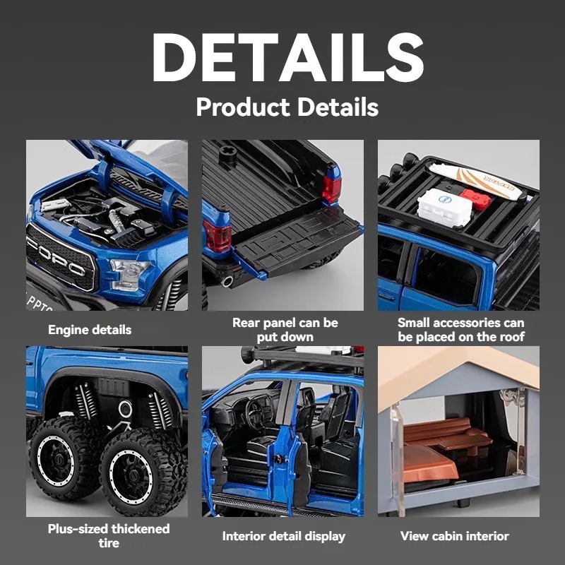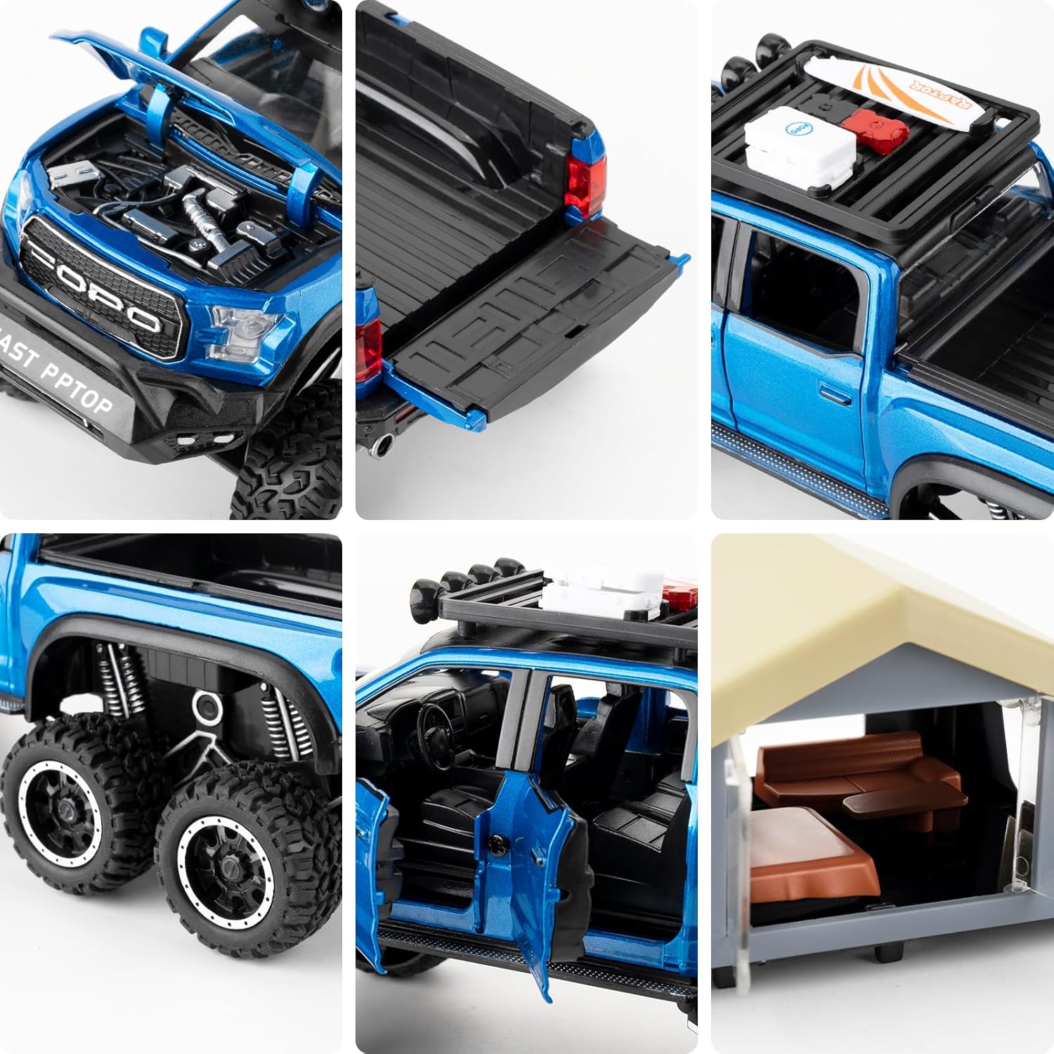 Home 1.24 Scale Cars 1.24 SCALE FORD PICKUP MOTERHOME-BLUE