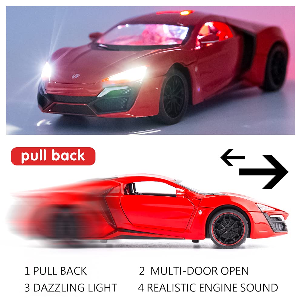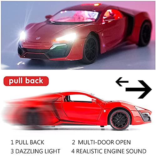 • 🏎️🎁 🏎️The car model has the powerful functions, which the Childhood, tail and the doors can be opened. Also have the pull back function, you can pull back the car and then it will driving with strong Power. The simulation of the car makes the car look beautiful and cool!. Made of high quality zinc alloy material, Full metal body car which makes it very difficult to be damaged. Non-toxic water-based paint spray and doesn’t contain formaldehyde and any other harmful substances. Not easy to Wreck and scratches with the delicate touch. 🏎️🎁🏎️