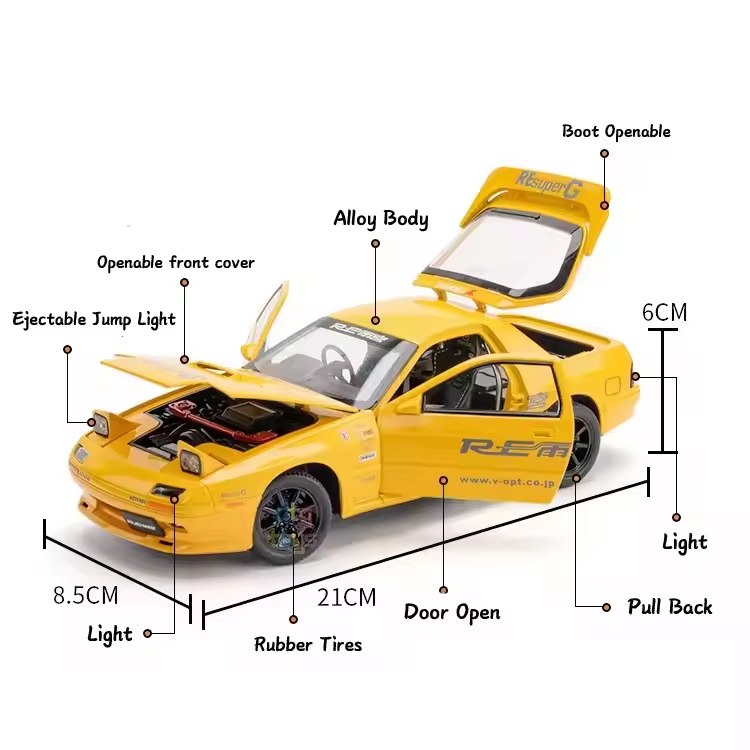 SKU: 1.24 SCALE MAZDA RX7-YELLOW Category: 1.24 Scale Cars
