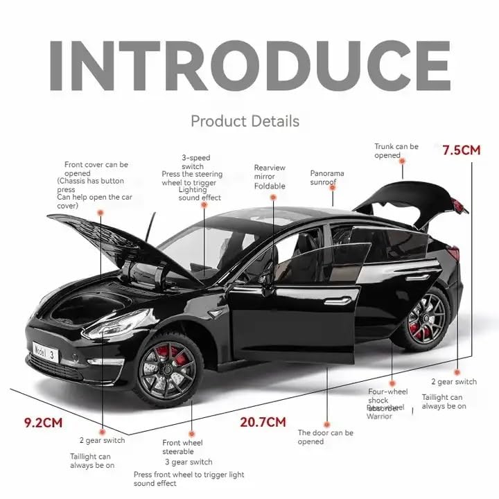 • 🏎️🎁 🏎️The car model has the powerful functions, which the Childhood, tail and the doors can be opened. Also have the pull back function, you can pull back the car and then it will driving with strong Power. The simulation of the car makes the car look beautiful and cool!. Made of high quality zinc alloy material, Full metal body car which makes it very difficult to be damaged. Non-toxic water-based paint spray and doesn’t contain formaldehyde and any other harmful substances. Not easy to Wreck and scratches with the delicate touch. 🏎️🎁🏎️