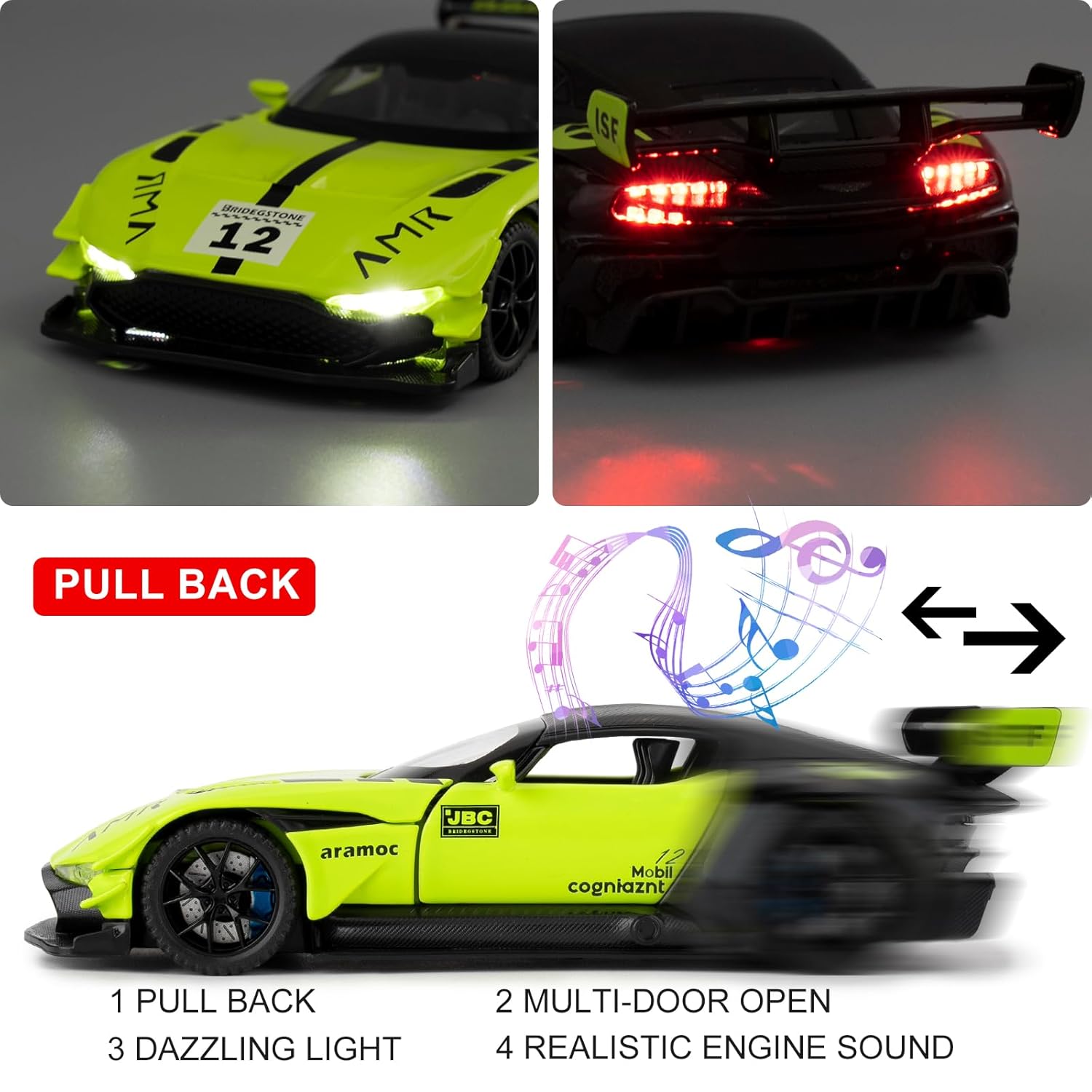 - 🏎️🎁 🏎️The car model has the powerful functions, which the Childhood, tail and the doors can be opened. Also have the pull back function, you can pull back the car and then it will driving with strong Power. The simulation of the car makes the car look beautiful and cool!. Made of high quality zinc alloy material, Full metal body car which makes it very difficult to be damaged. Non-toxic water-based paint spray and doesn’t contain formaldehyde and any other harmful substances. Not easy to Wreck and scratches with the delicate touch. 🏎️🎁🏎️