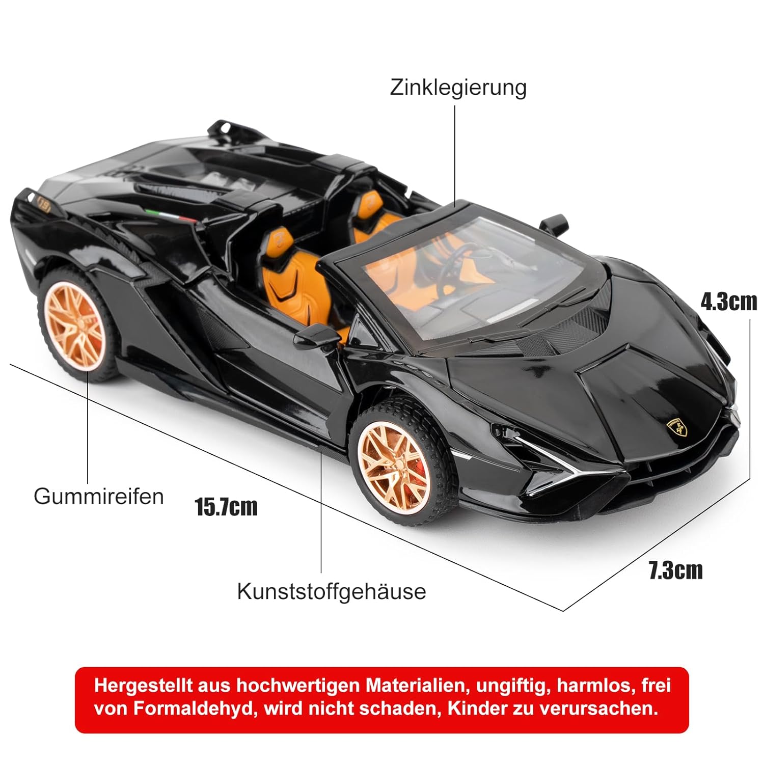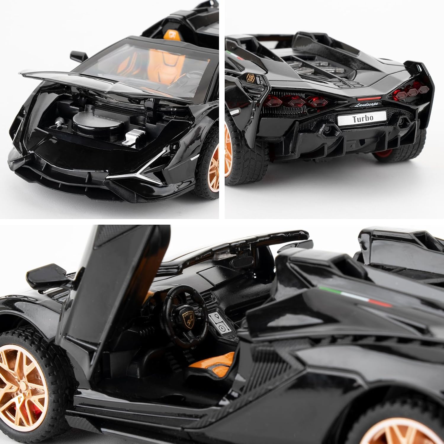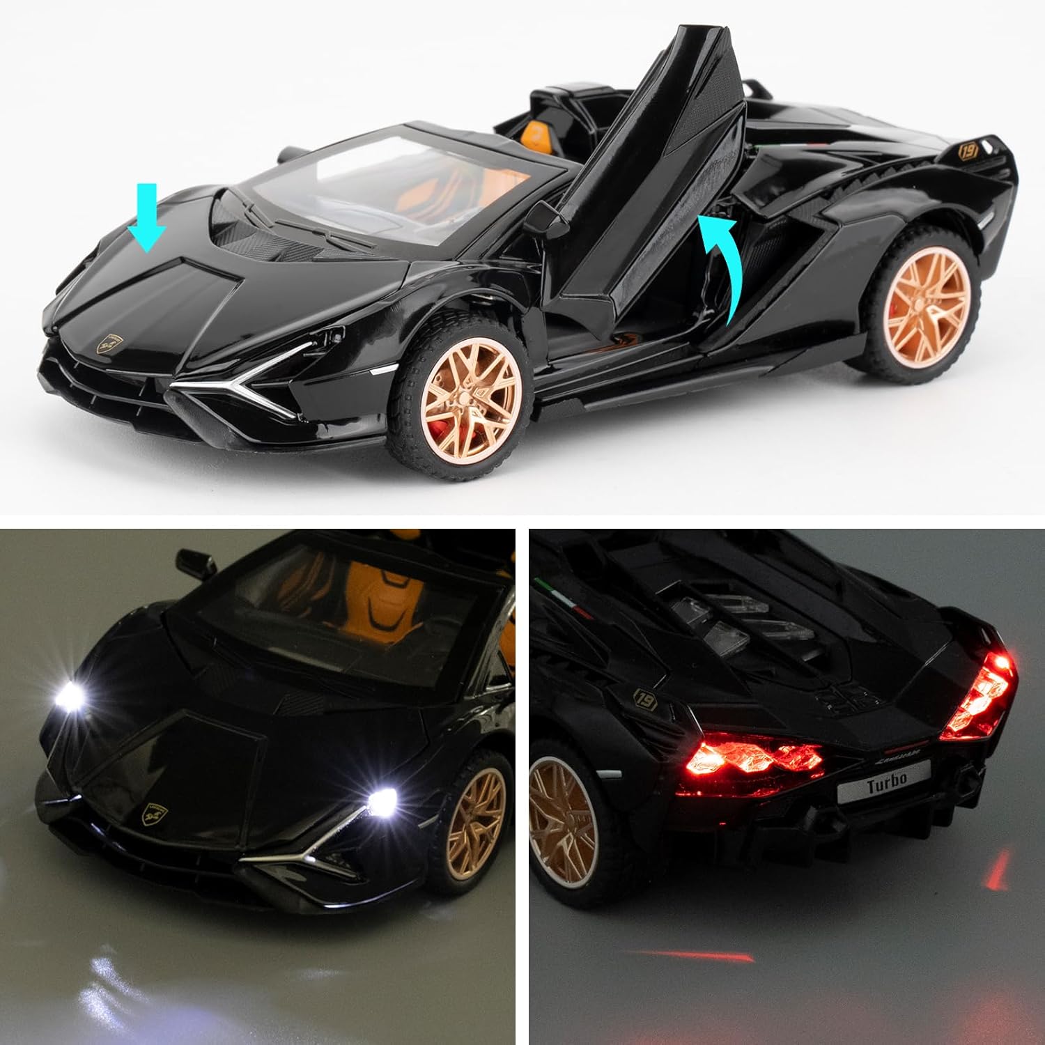 - 🏎️🎁 🏎️The car model has the powerful functions, which the Childhood, tail and the doors can be opened. Also have the pull back function, you can pull back the car and then it will driving with strong Power. The simulation of the car makes the car look beautiful and cool!. Made of high quality zinc alloy material, Full metal body car which makes it very difficult to be damaged. Non-toxic water-based paint spray and doesn’t contain formaldehyde and any other harmful substances. Not easy to Wreck and scratches with the delicate touch. 🏎️🎁🏎️