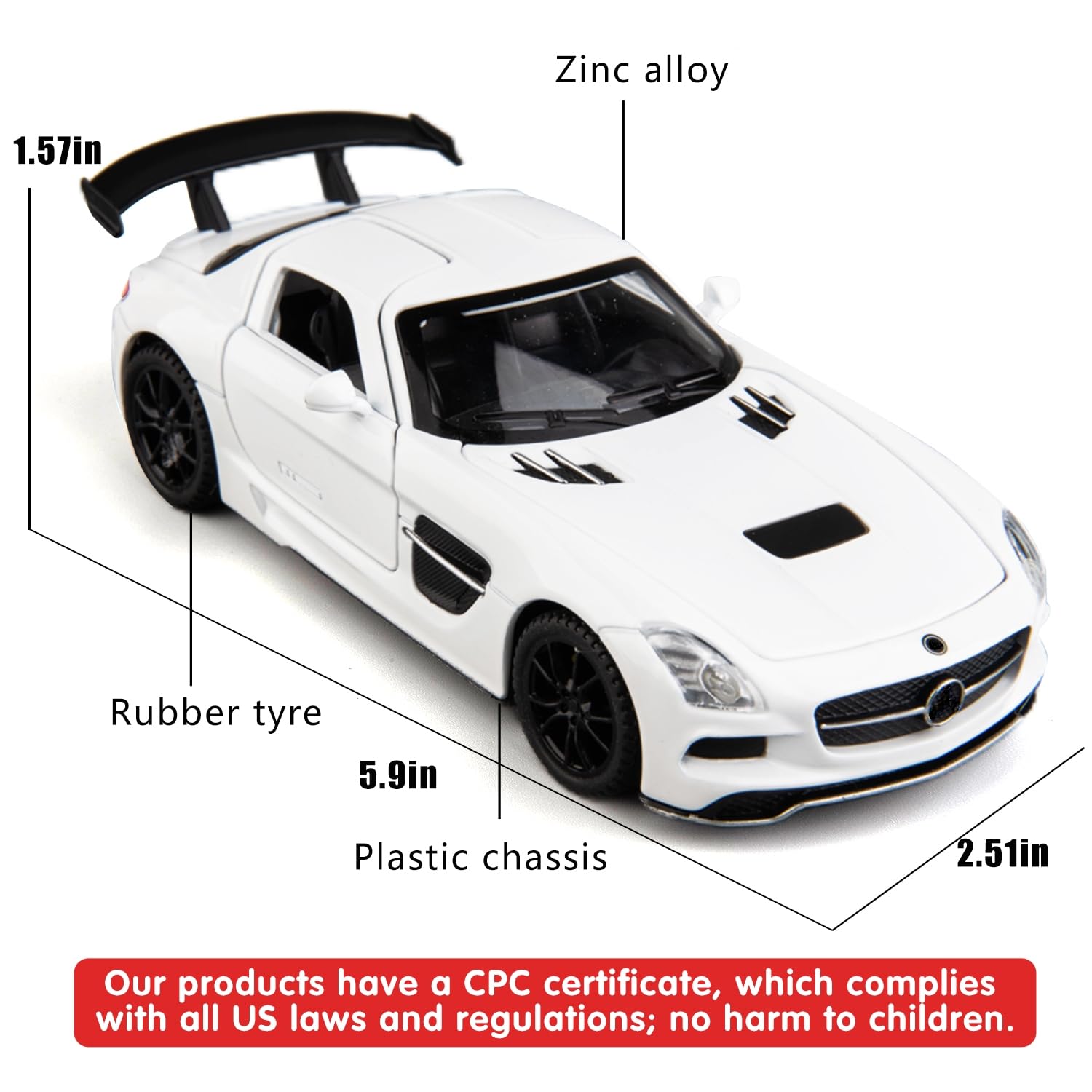 - 🏎️🎁 🏎️The car model has the powerful functions, which the Childhood, tail and the doors can be opened. Also have the pull back function, you can pull back the car and then it will driving with strong Power. The simulation of the car makes the car look beautiful and cool!. Made of high quality zinc alloy material, Full metal body car which makes it very difficult to be damaged. Non-toxic water-based paint spray and doesn’t contain formaldehyde and any other harmful substances. Not easy to Wreck and scratches with the delicate touch. 🏎️🎁🏎️
