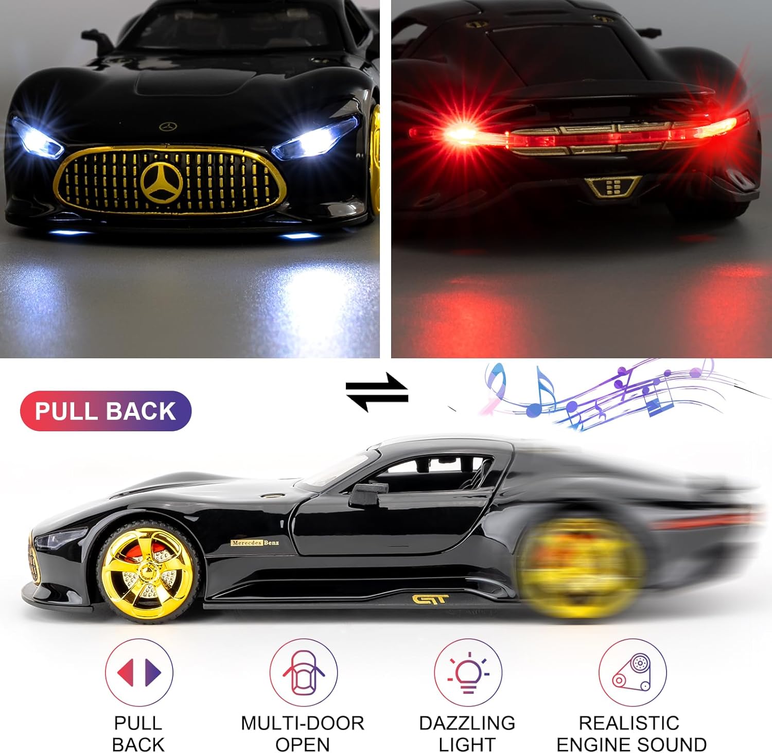 • 🏎️🎁 🏎️The car model has the powerful functions, which the Childhood, tail and the doors can be opened. Also have the pull back function, you can pull back the car and then it will driving with strong Power. The simulation of the car makes the car look beautiful and cool!. Made of high quality zinc alloy material, Full metal body car which makes it very difficult to be damaged. Non-toxic water-based paint spray and doesn’t contain formaldehyde and any other harmful substances. Not easy to Wreck and scratches with the delicate touch. 🏎️🎁🏎️