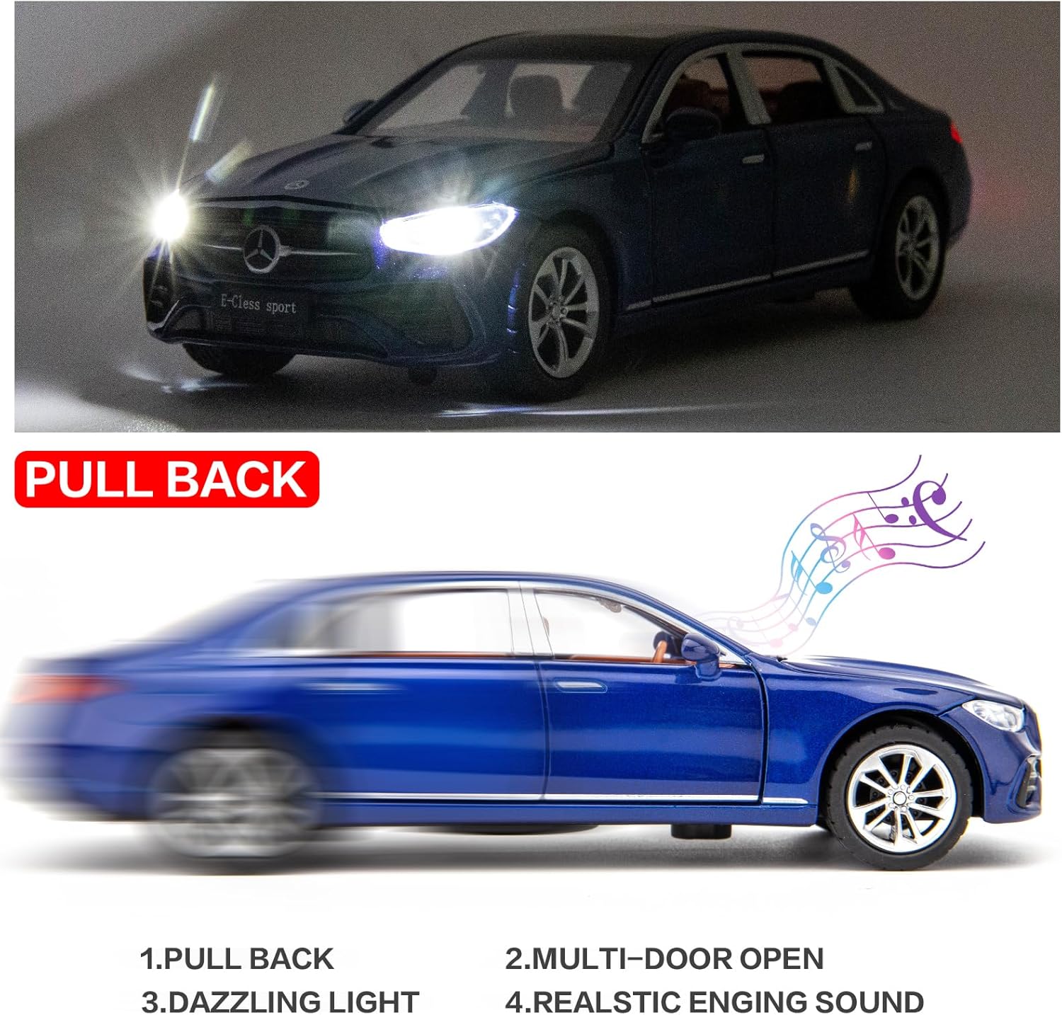 • 🏎️🎁 🏎️The car model has the powerful functions, which the Childhood, tail and the doors can be opened. Also have the pull back function, you can pull back the car and then it will driving with strong Power. The simulation of the car makes the car look beautiful and cool!. Made of high quality zinc alloy material, Full metal body car which makes it very difficult to be damaged. Non-toxic water-based paint spray and doesn’t contain formaldehyde and any other harmful substances. Not easy to Wreck and scratches with the delicate touch. 🏎️🎁🏎️