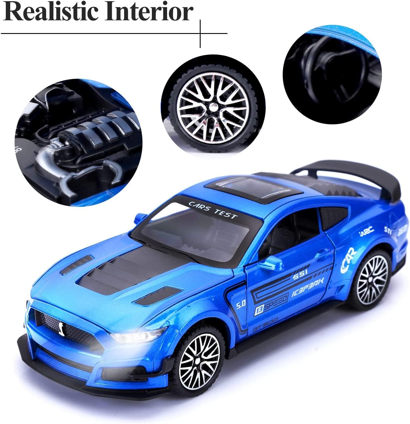 - 🏎️🎁 🏎️The car model has the powerful functions, which the Childhood, tail and the doors can be opened. Also have the pull back function, you can pull back the car and then it will driving with strong Power. The simulation of the car makes the car look beautiful and cool!. Made of high quality zinc alloy material, Full metal body car which makes it very difficult to be damaged. Non-toxic water-based paint spray and doesn’t contain formaldehyde and any other harmful substances. Not easy to Wreck and scratches with the delicate touch. 🏎️🎁🏎️