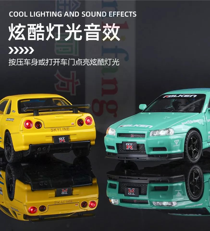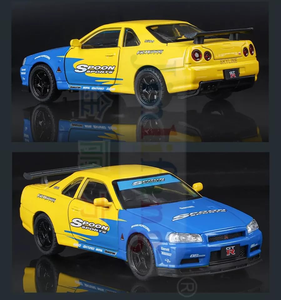 1.32 SCALE NISSAN GTR SKYLINE R34-BLUE/YELLOW