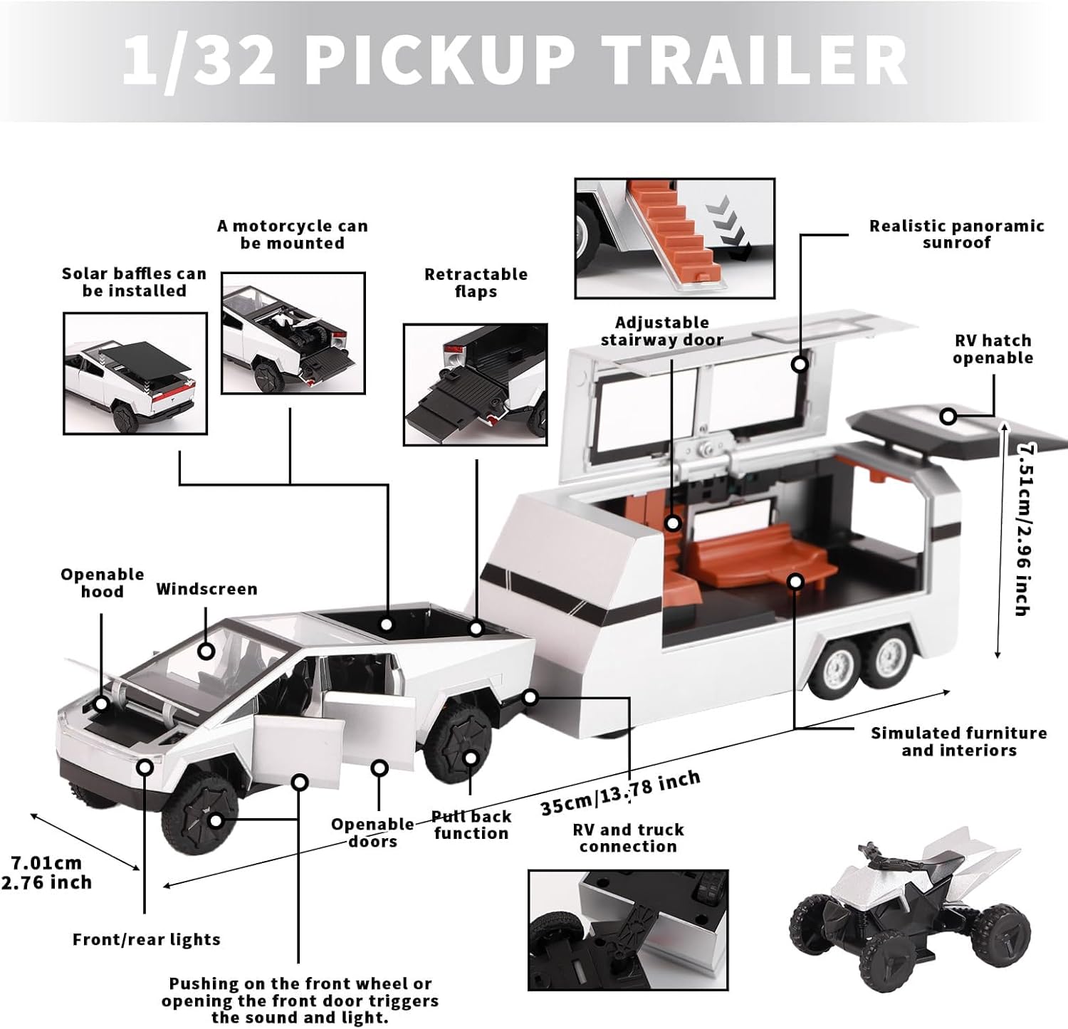 1.32 SCALE TESLA CYBERTRUCK (RV CAMPER)-SILVER