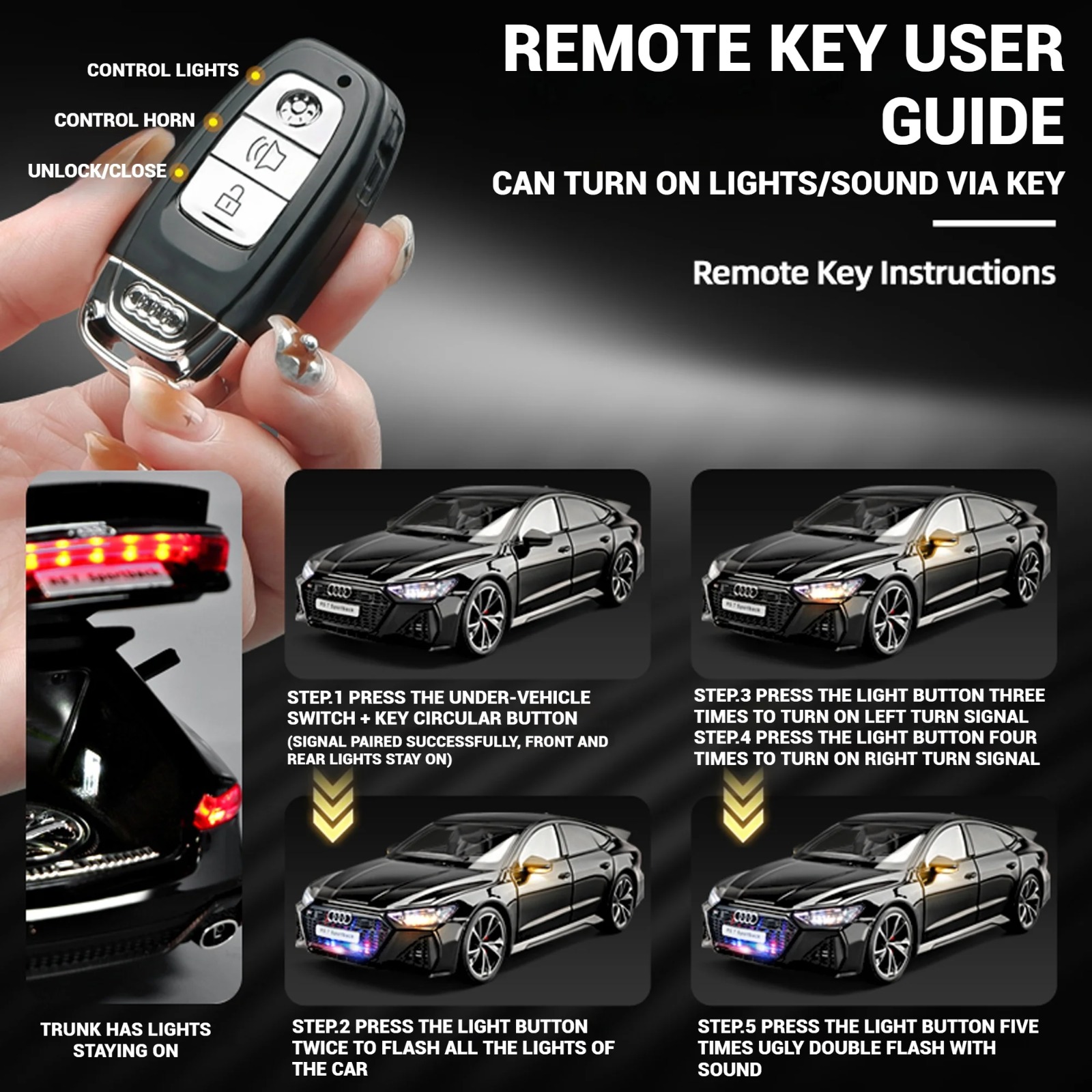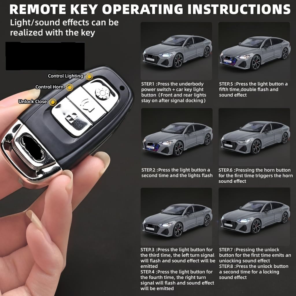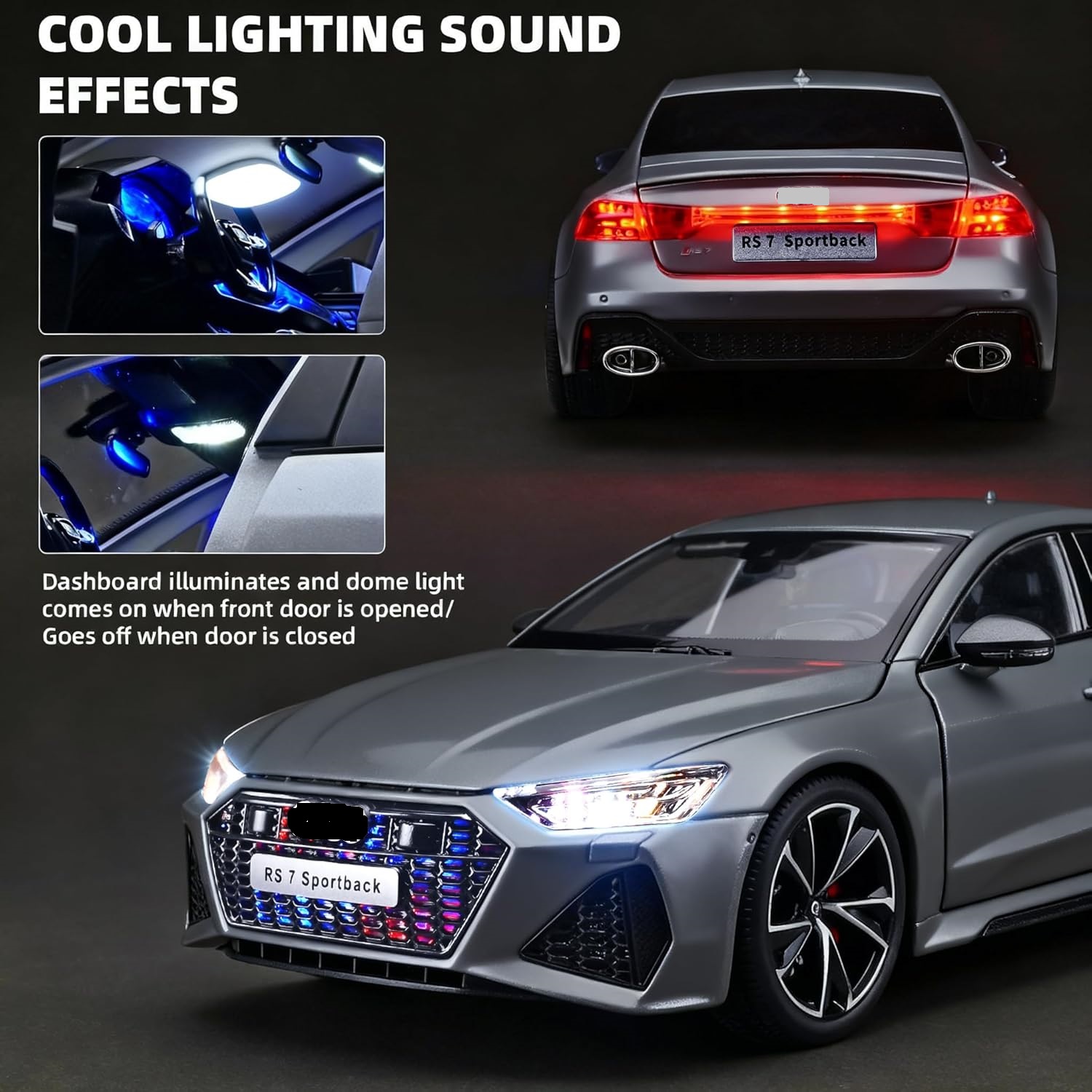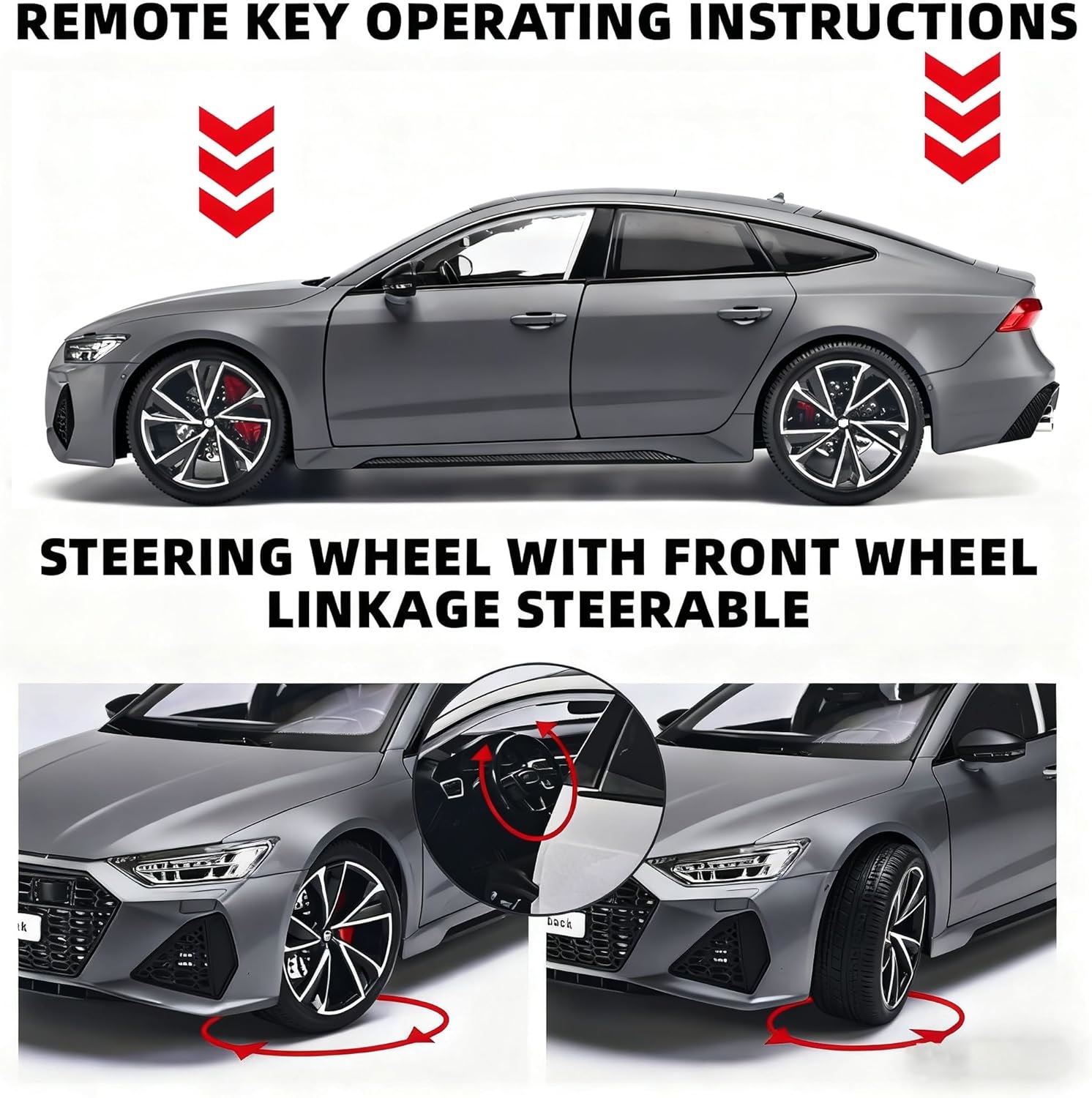 1:18 Scale Audi RS7 Remote Die-Cast Metal Car with Sport car Openable Doors Light and Sound,Pull Back Function Indoor Outdoor Toy for Kids (GREY)