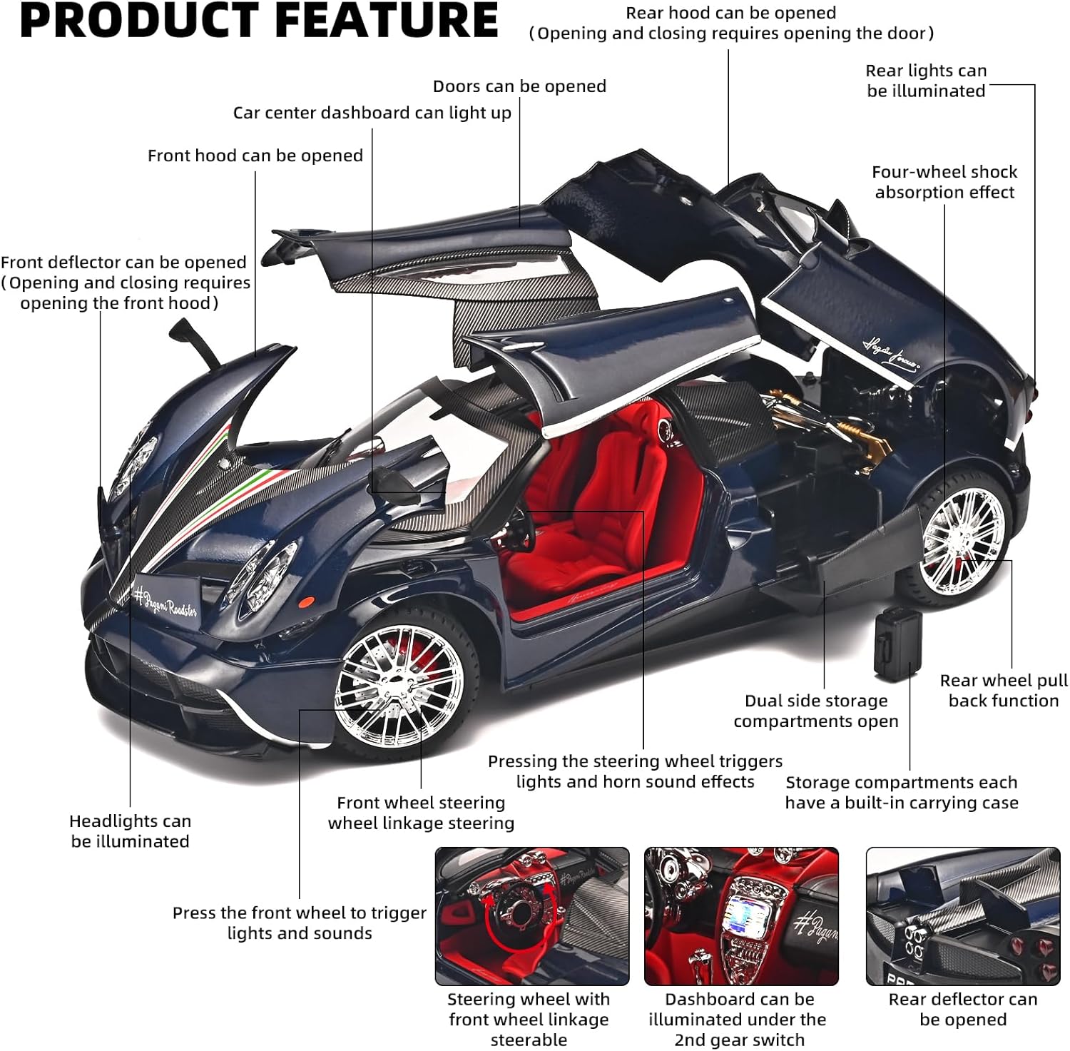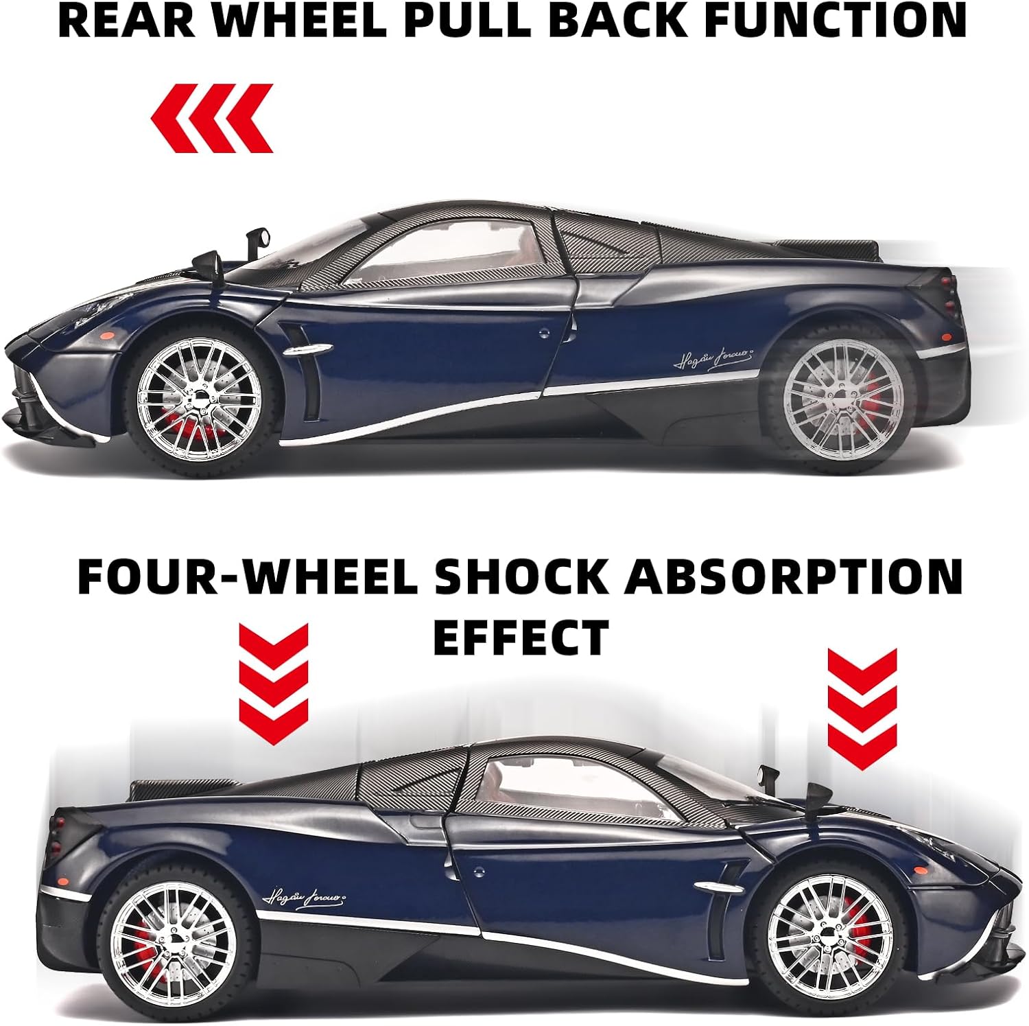 - 🏎️🎁 🏎️The car model has the powerful functions, which the Childhood, tail and the doors can be opened. Also have the pull back function, you can pull back the car and then it will driving with strong Power. The simulation of the car makes the car look beautiful and cool!. Made of high quality zinc alloy material, Full metal body car which makes it very difficult to be damaged. Non-toxic water-based paint spray and doesn’t contain formaldehyde and any other harmful substances. Not easy to Wreck and scratches with the delicate touch. 🏎️🎁🏎️