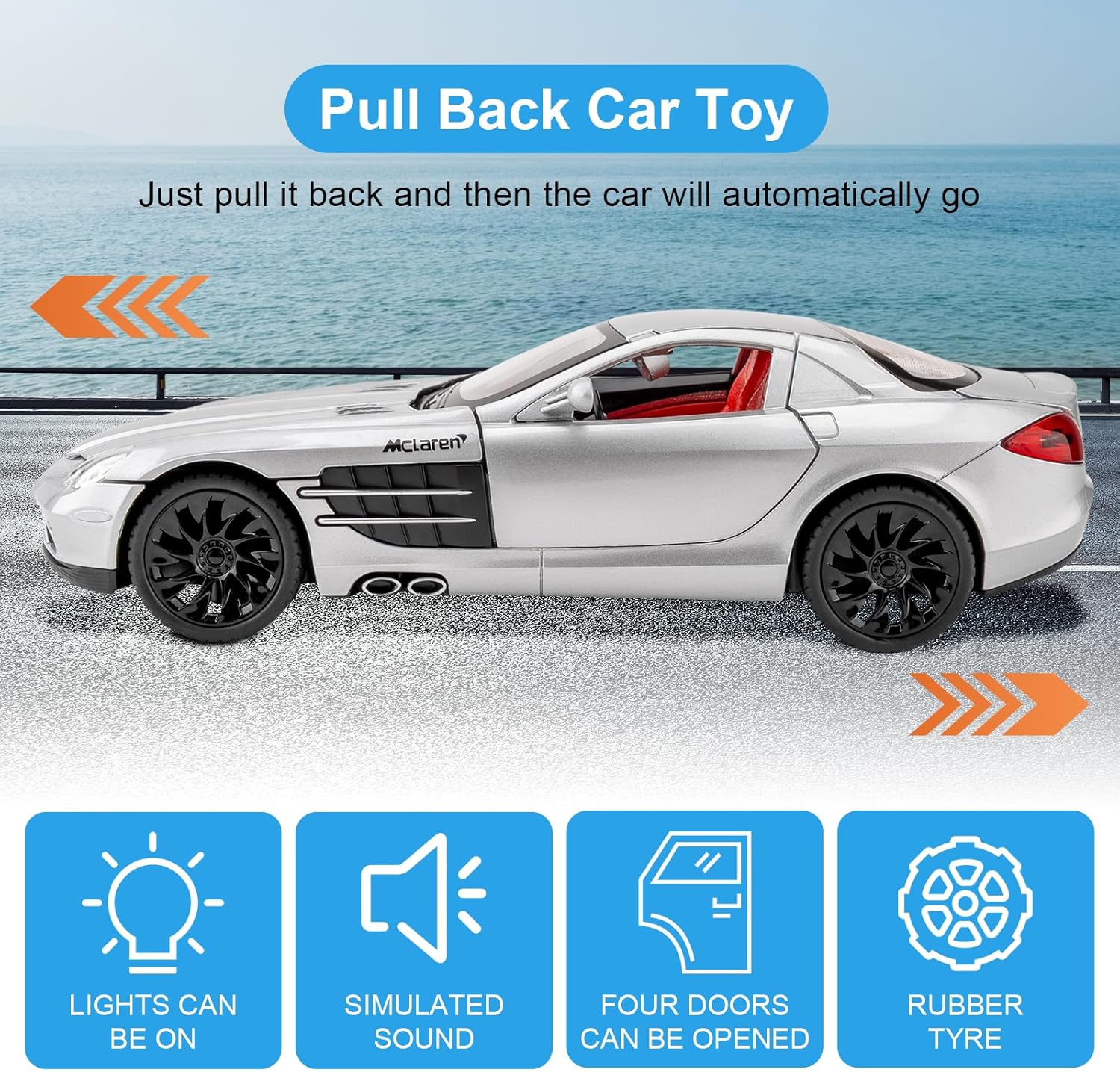 • 🏎️🎁 🏎️The car model has the powerful functions, which the Childhood, tail and the doors can be opened. Also have the pull back function, you can pull back the car and then it will driving with strong Power. The simulation of the car makes the car look beautiful and cool!. Made of high quality zinc alloy material, Full metal body car which makes it very difficult to be damaged. Non-toxic water-based paint spray and doesn’t contain formaldehyde and any other harmful substances. Not easy to Wreck and scratches with the delicate touch. 🏎️🎁🏎️