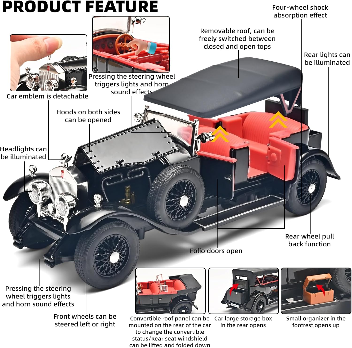 - 🎡 🚖【Product function】: the vehicle has a powerful pull-back function. Just pull it back, let go, and the car will go a long way. The doors can be opened to view the entire vehicle interior. So appealing to children and collectors.🚖🎡