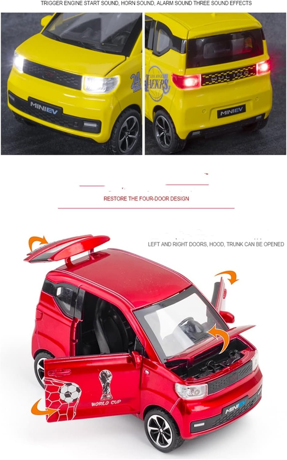 - 🏎️🎁 🏎️The car model has the powerful functions, which the Childhood, tail and the doors can be opened. Also have the pull back function, you can pull back the car and then it will driving with strong Power. The simulation of the car makes the car look beautiful and cool!. Made of high quality zinc alloy material, Full metal body car which makes it very difficult to be damaged. Non-toxic water-based paint spray and doesn’t contain formaldehyde and any other harmful substances. Not easy to Wreck and scratches with the delicate touch. 🏎️🎁🏎️