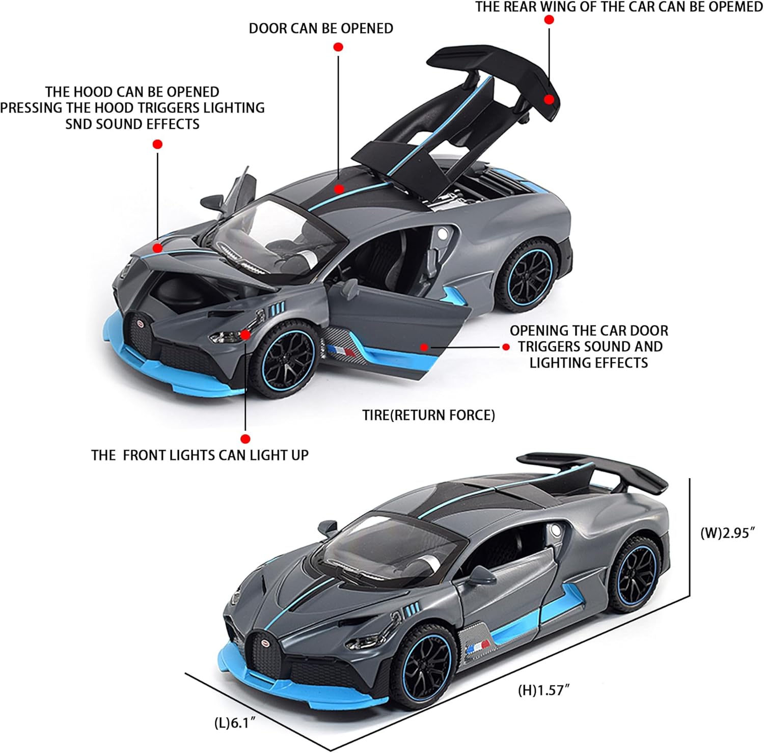• 🏎️🎁 🏎️The car model has the powerful functions, which the Childhood, tail and the doors can be opened. Also have the pull back function, you can pull back the car and then it will driving with strong Power. The simulation of the car makes the car look beautiful and cool!. Made of high quality zinc alloy material, Full metal body car which makes it very difficult to be damaged. Non-toxic water-based paint spray and doesn’t contain formaldehyde and any other harmful substances. Not easy to Wreck and scratches with the delicate touch. 🏎️🎁🏎️