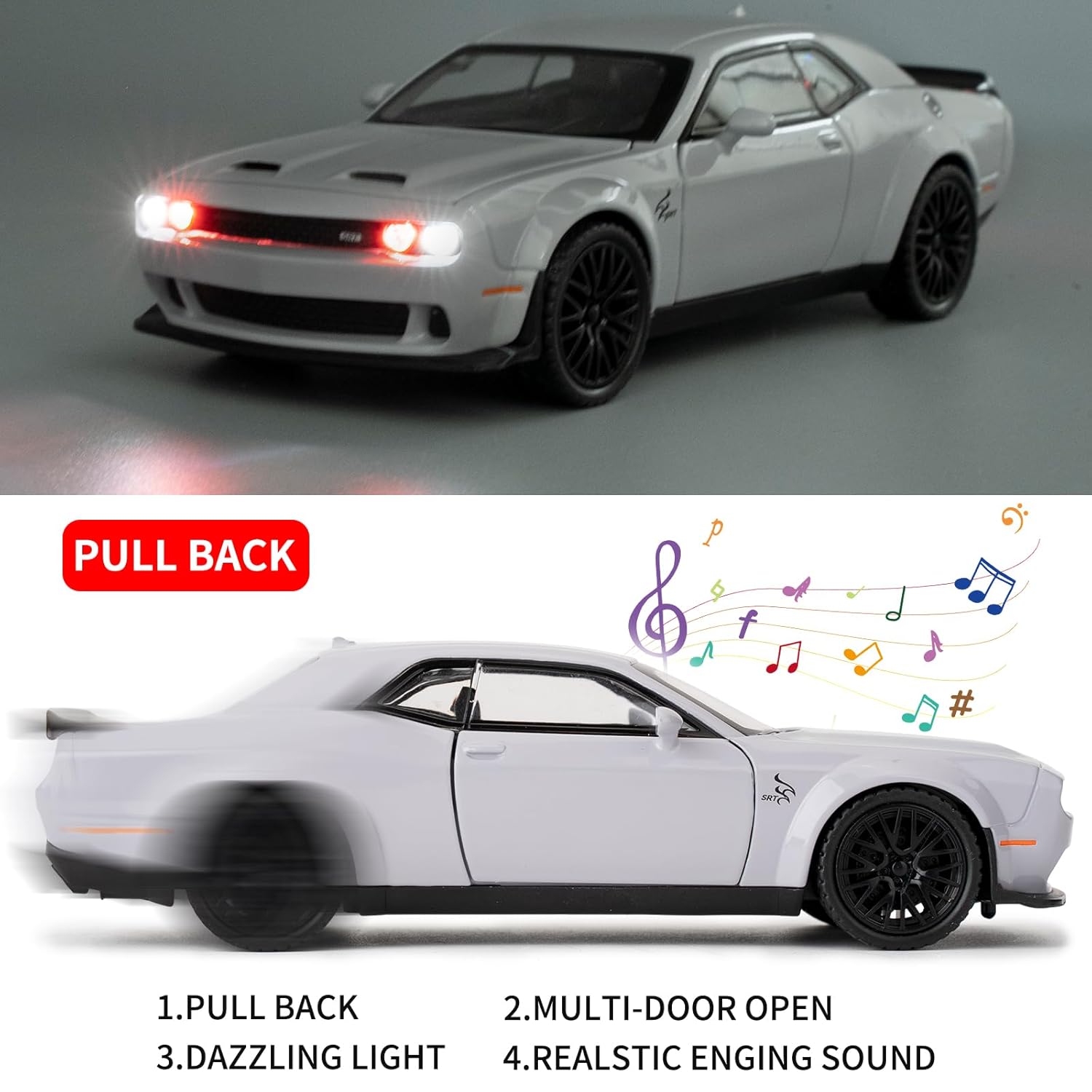 - 🏎️🎁 🏎️The car model has the powerful functions, which the Childhood, tail and the doors can be opened. Also have the pull back function, you can pull back the car and then it will driving with strong Power. The simulation of the car makes the car look beautiful and cool!. Made of high quality zinc alloy material, Full metal body car which makes it very difficult to be damaged. Non-toxic water-based paint spray and doesn’t contain formaldehyde and any other harmful substances. Not easy to Wreck and scratches with the delicate touch. 🏎️🎁🏎️