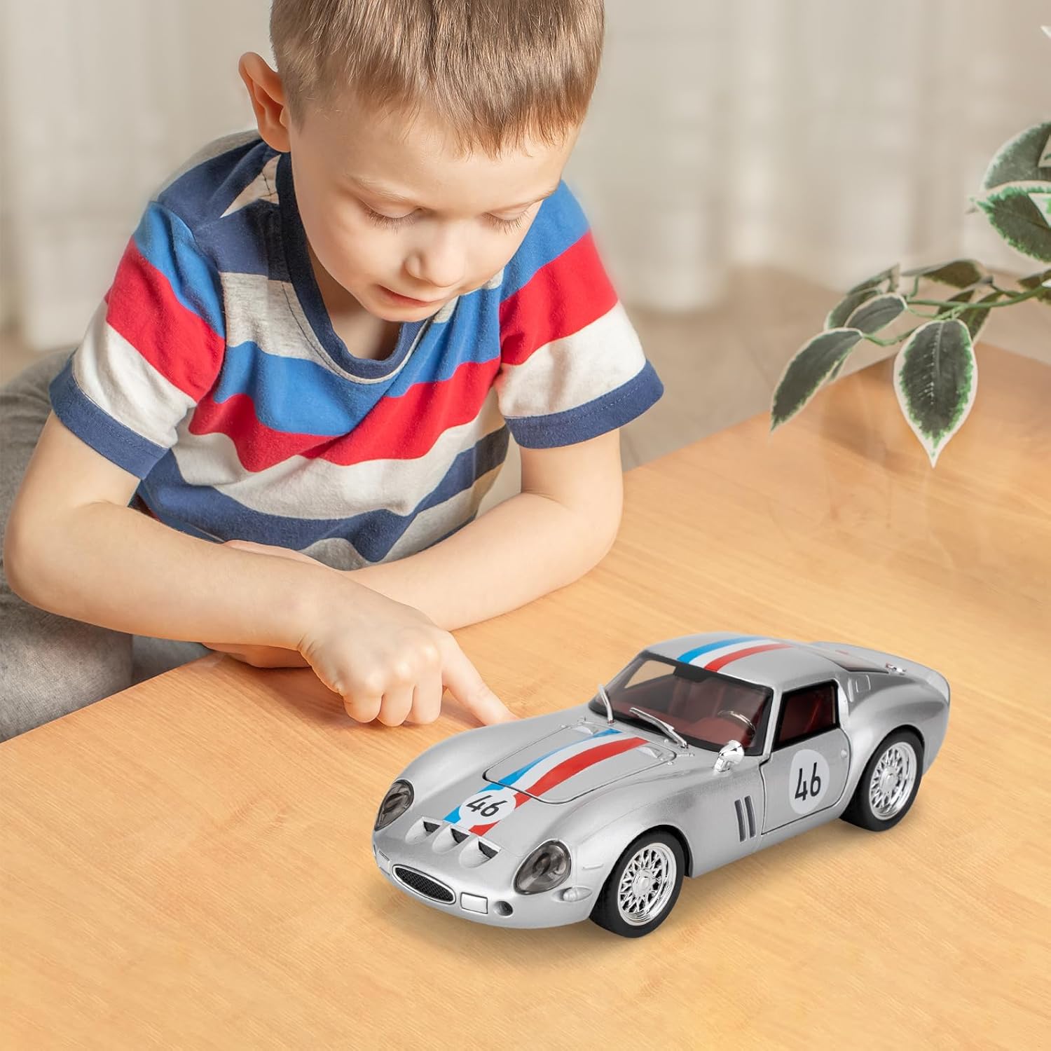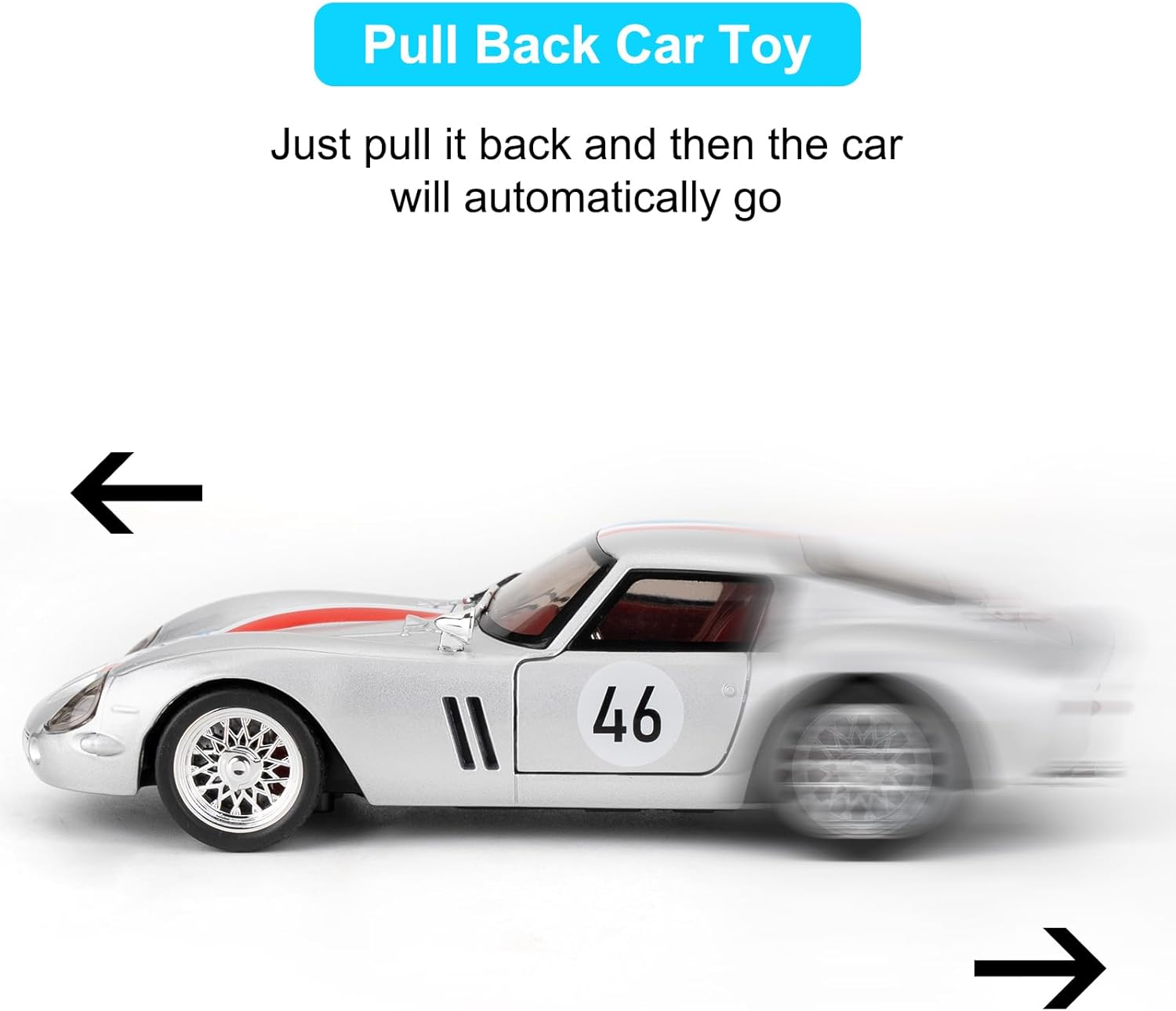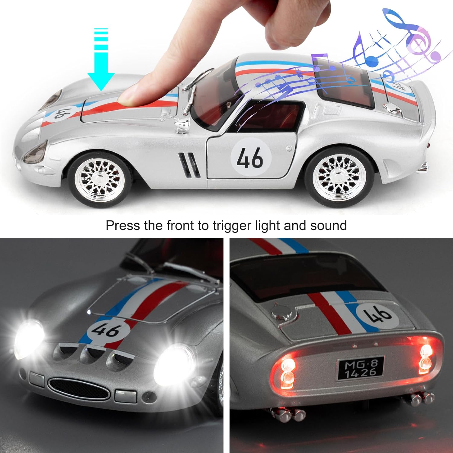 - 🏎️🎁 🏎️The car model has the powerful functions, which the Childhood, tail and the doors can be opened. Also have the pull back function, you can pull back the car and then it will driving with strong Power. The simulation of the car makes the car look beautiful and cool!. Made of high quality zinc alloy material, Full metal body car which makes it very difficult to be damaged. Non-toxic water-based paint spray and doesn’t contain formaldehyde and any other harmful substances. Not easy to Wreck and scratches with the delicate touch. 🏎️🎁🏎️