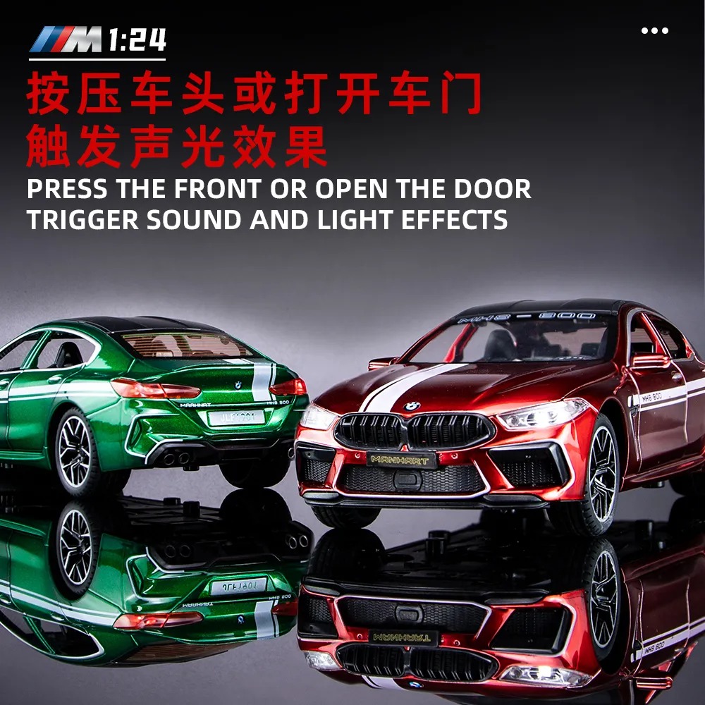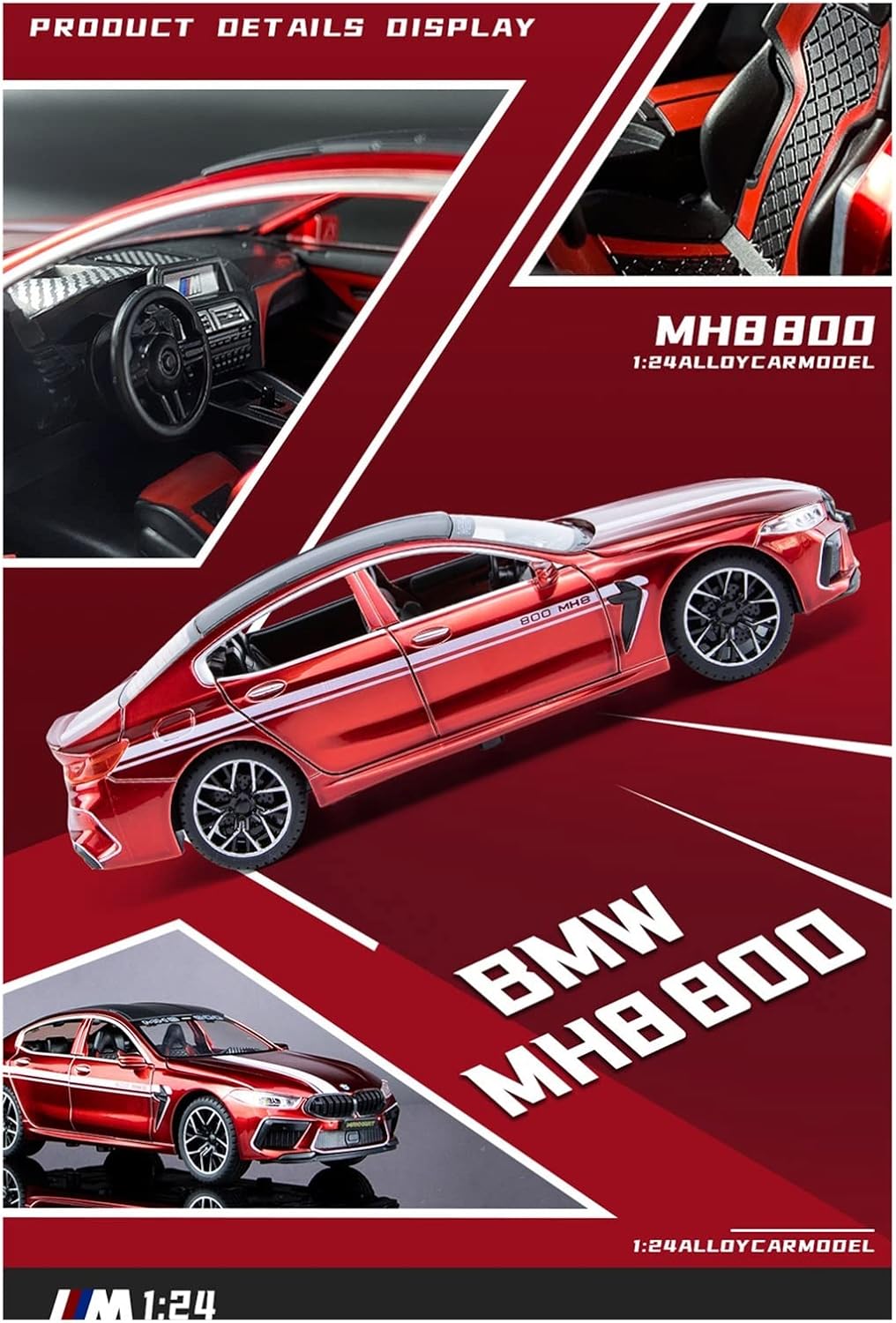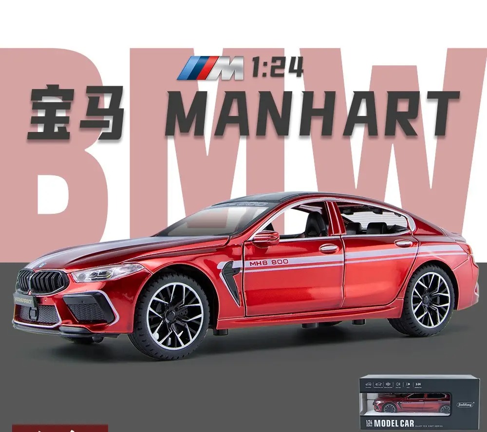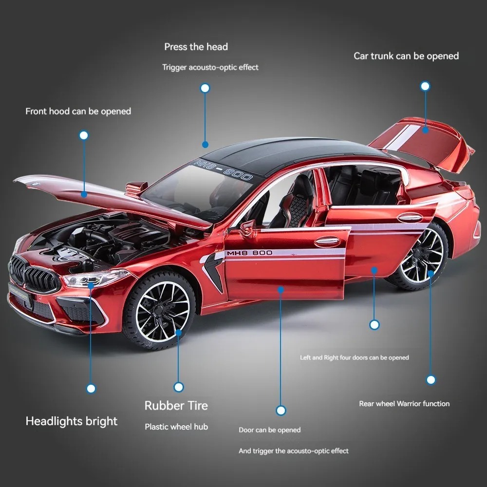 (BMW MH8 800) 1:24 Scale Exclusive Alloy Metal Pull Back Die-cast Car Scale Model with Sound Light Mini Auto Toy for Kids Metal Model Toy Car with Sound and Light [New Car] [RED]