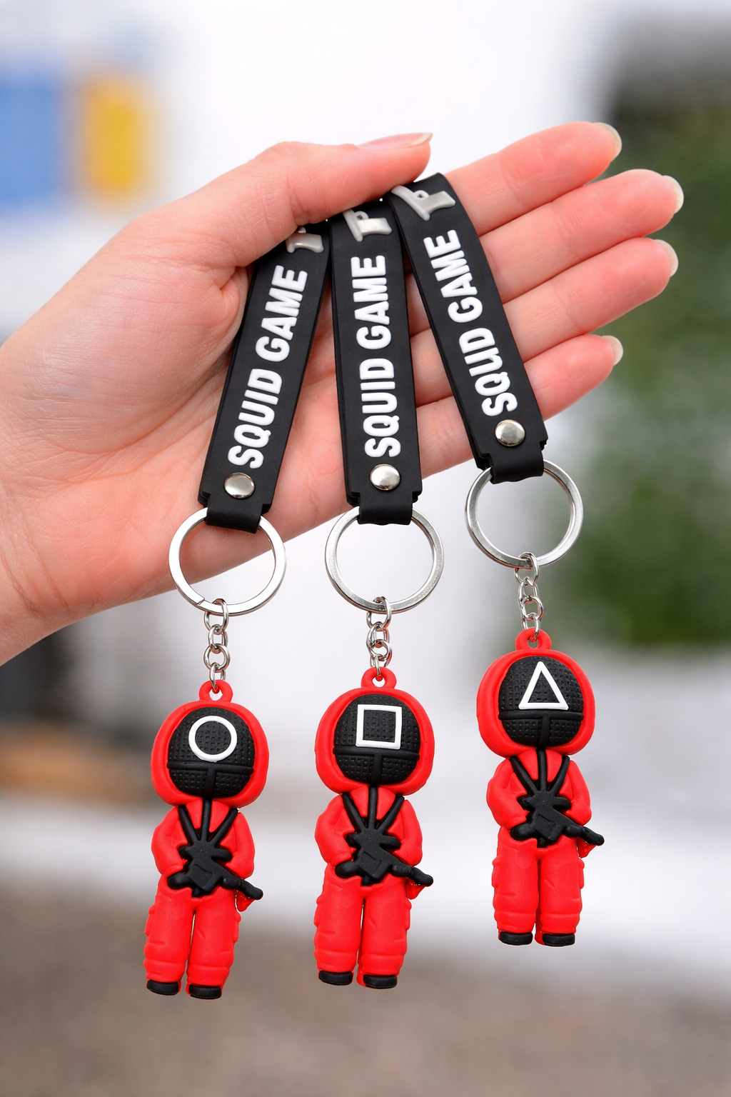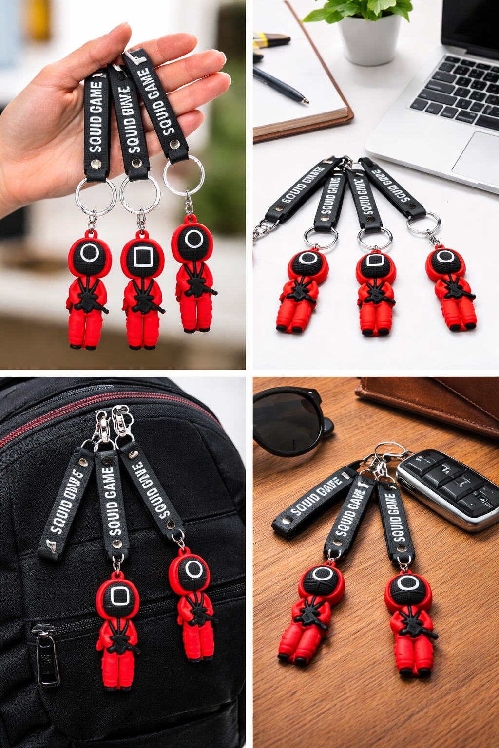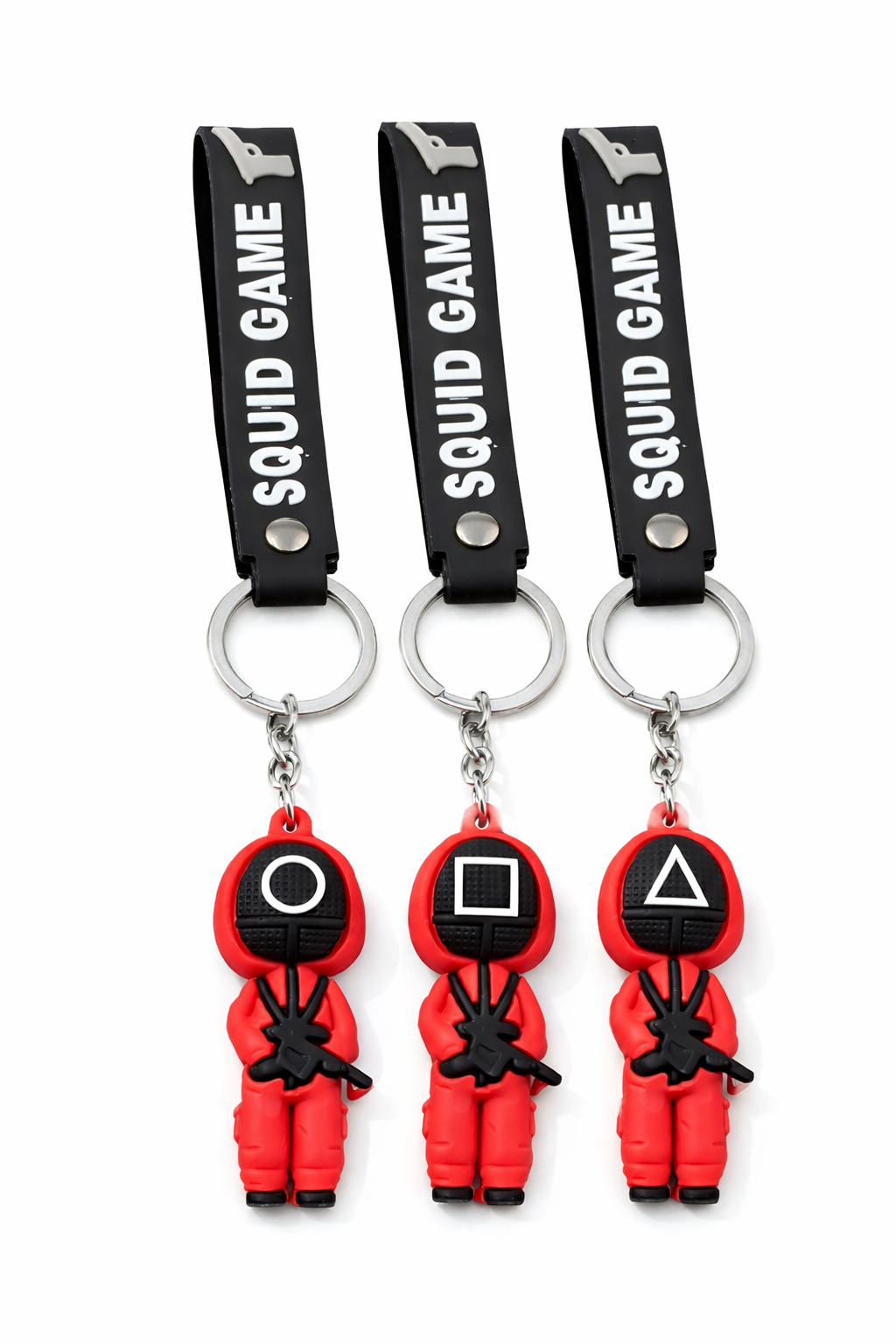FEXXA 3D Cute Squid Game Keychain Character Key Chain with Rubber Lanyard Key Chain [3 Unit]