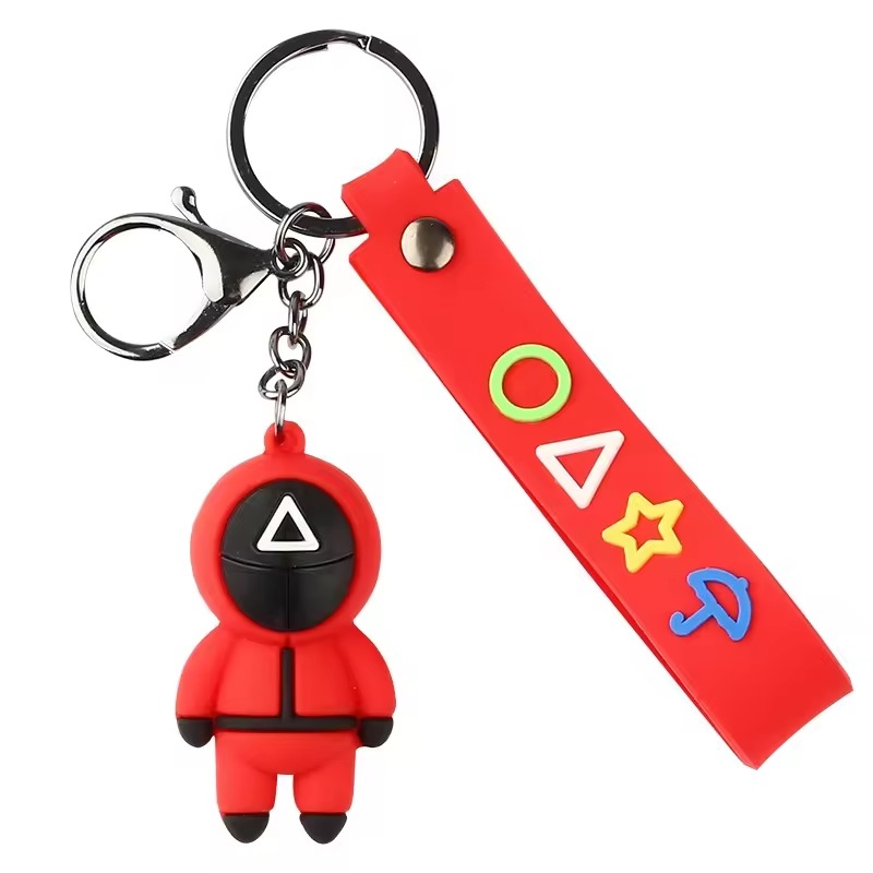 Home Stationery Item FEXXA 3D Cute Squid Game Keychain Character Key Chain with Rubber Lanyard Key Chain [PACK-1]