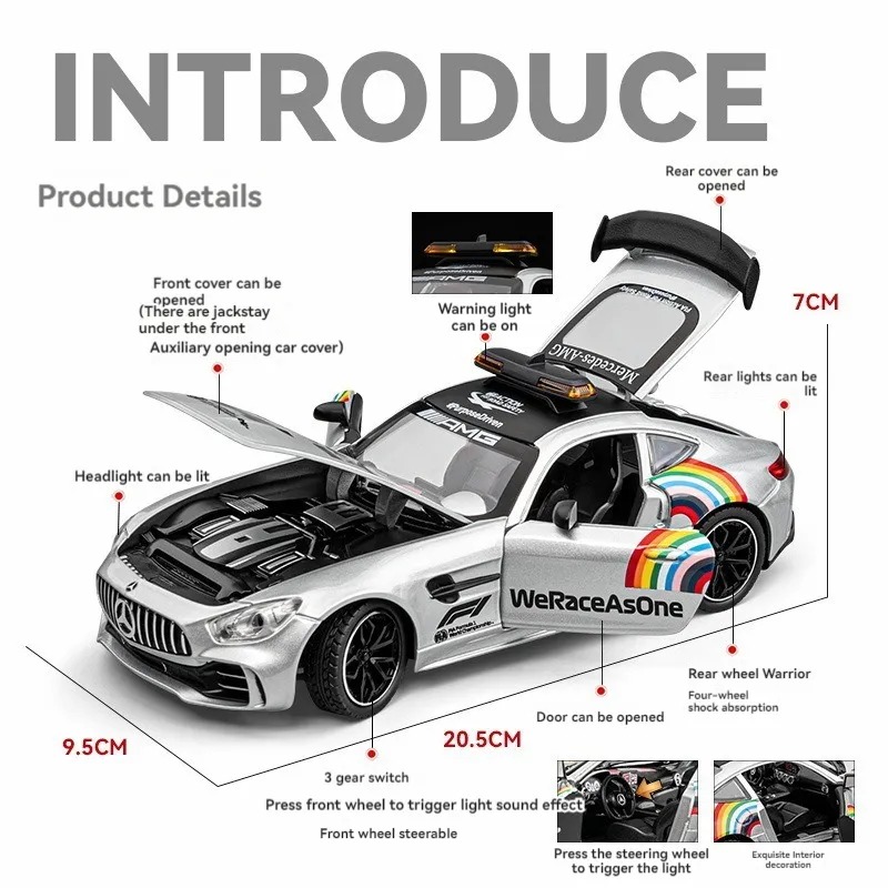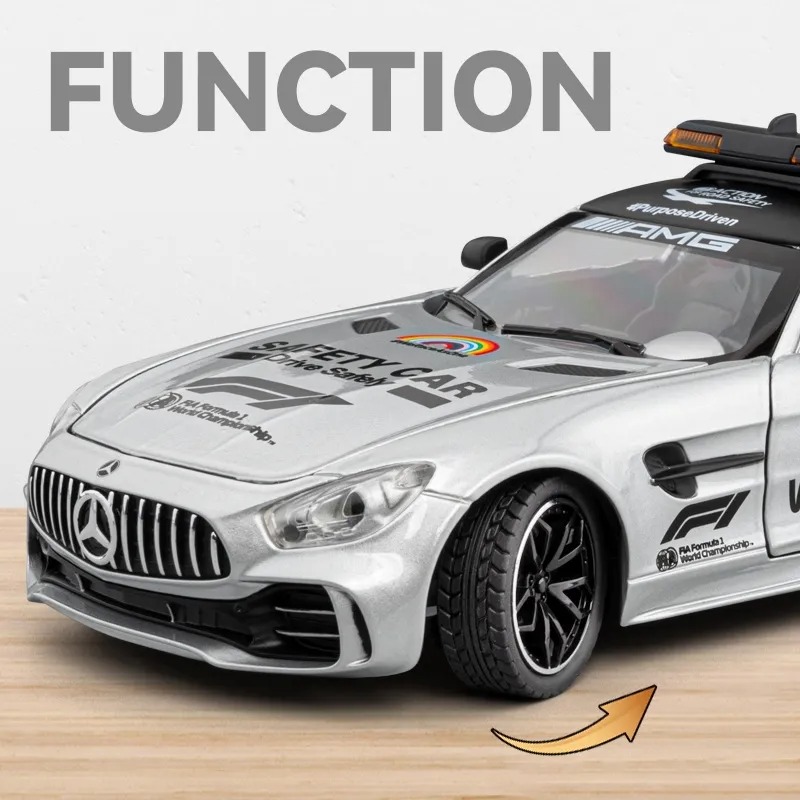 ( MERCEDES F1 SAFETY CAR) 1:24 Scale Exclusive Alloy Metal Pull Back Die-cast Car Scale Model with Sound Light Mini Auto Toy for Kids Metal Model Toy Car with Sound and Light [New Car] [SILVER]