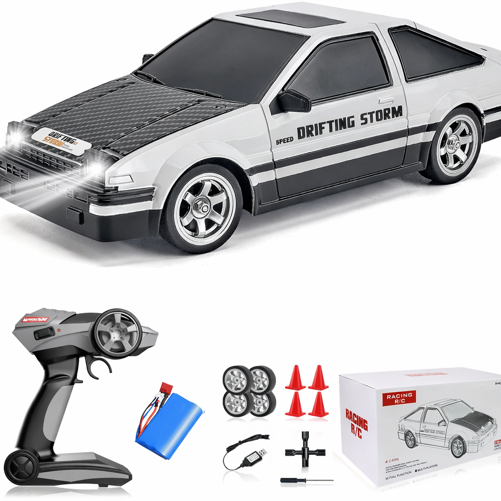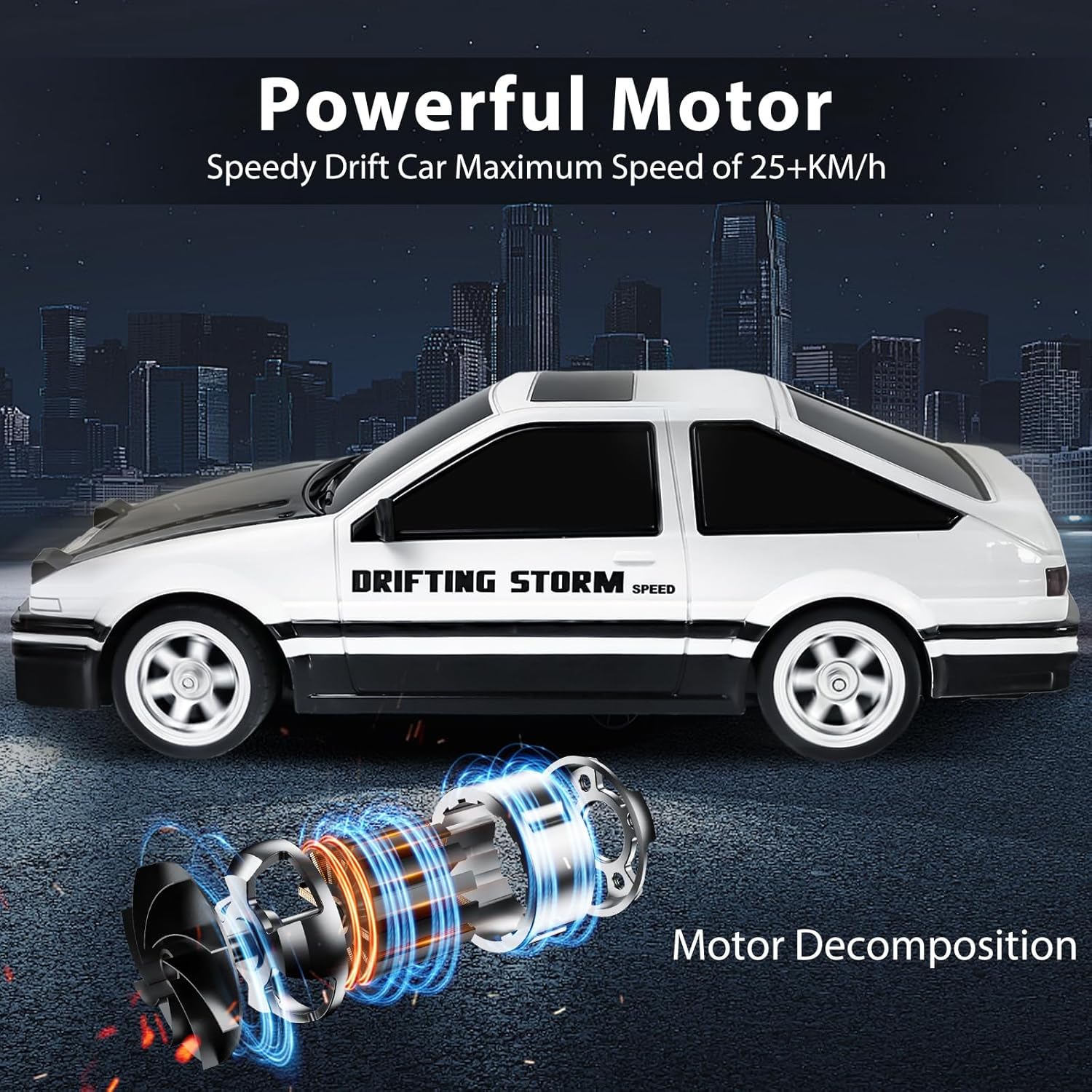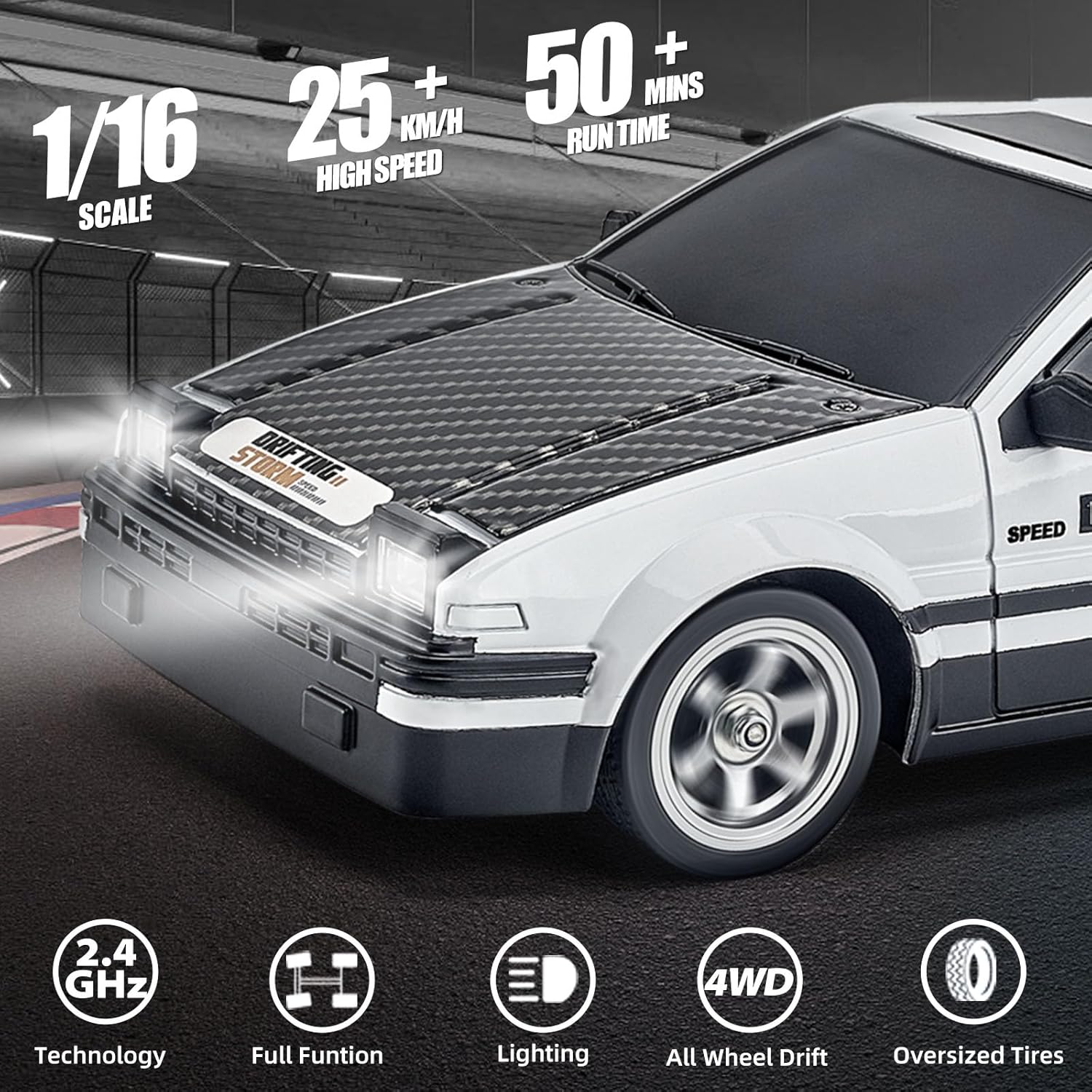 RC Drift Car, 1:16 Scale Remote Control Car, 4WD 40KM/H High Speed RC Racing, 2.4GHz Electric Sport Driftings with Headlight, Drifting Tires and Racing Tires for Adults ( 1:16 Scale TRUNO STORM-WHITE)